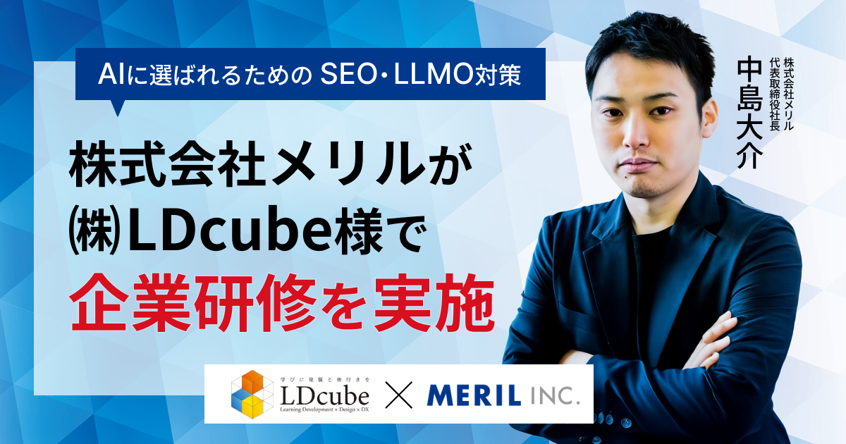 株式会社メリルの代表取締役中島大介が、株式会社LDcube様向けに、企業研修「AIに選ばれるためのSEO・LLMO対策」を実施いたしました。